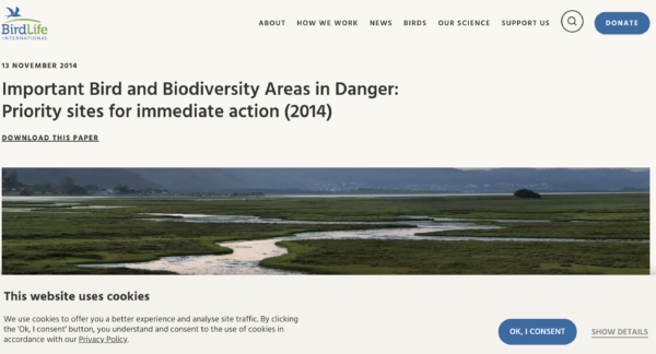 Plataforma da Birdlife International sobre uma rede de locais que são significativos para a viabilidade a longo prazo das populações de aves que ocorrem naturalmente.